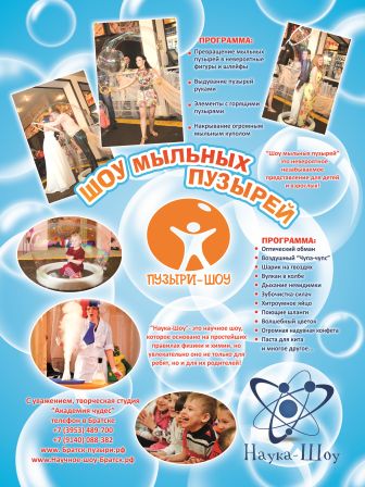Galina38rus писал(а):Здравствуйте, а сколько стоит шоу гигантских мыльных пузырей?