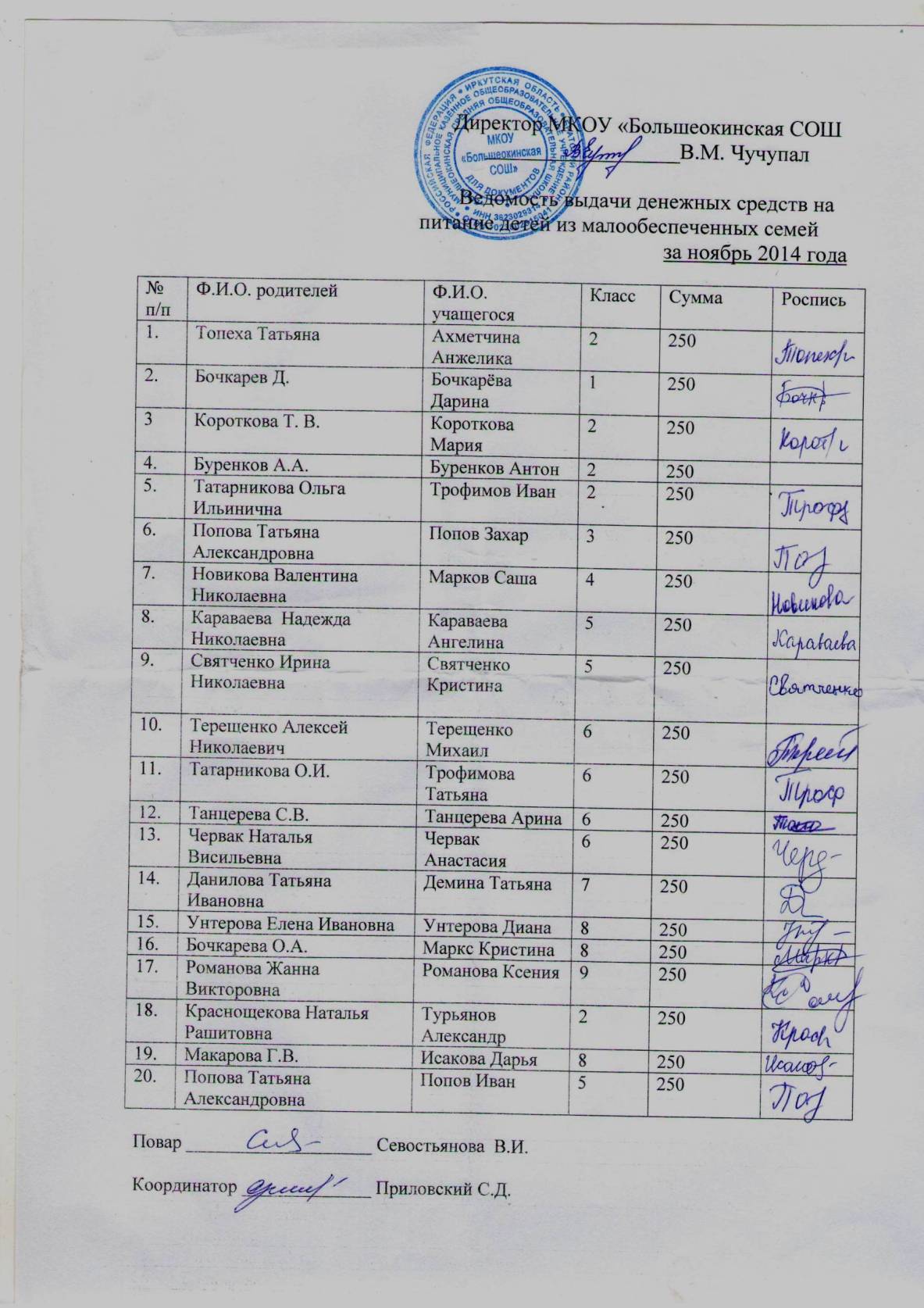 Ведомость за ноябрь 2014 г.