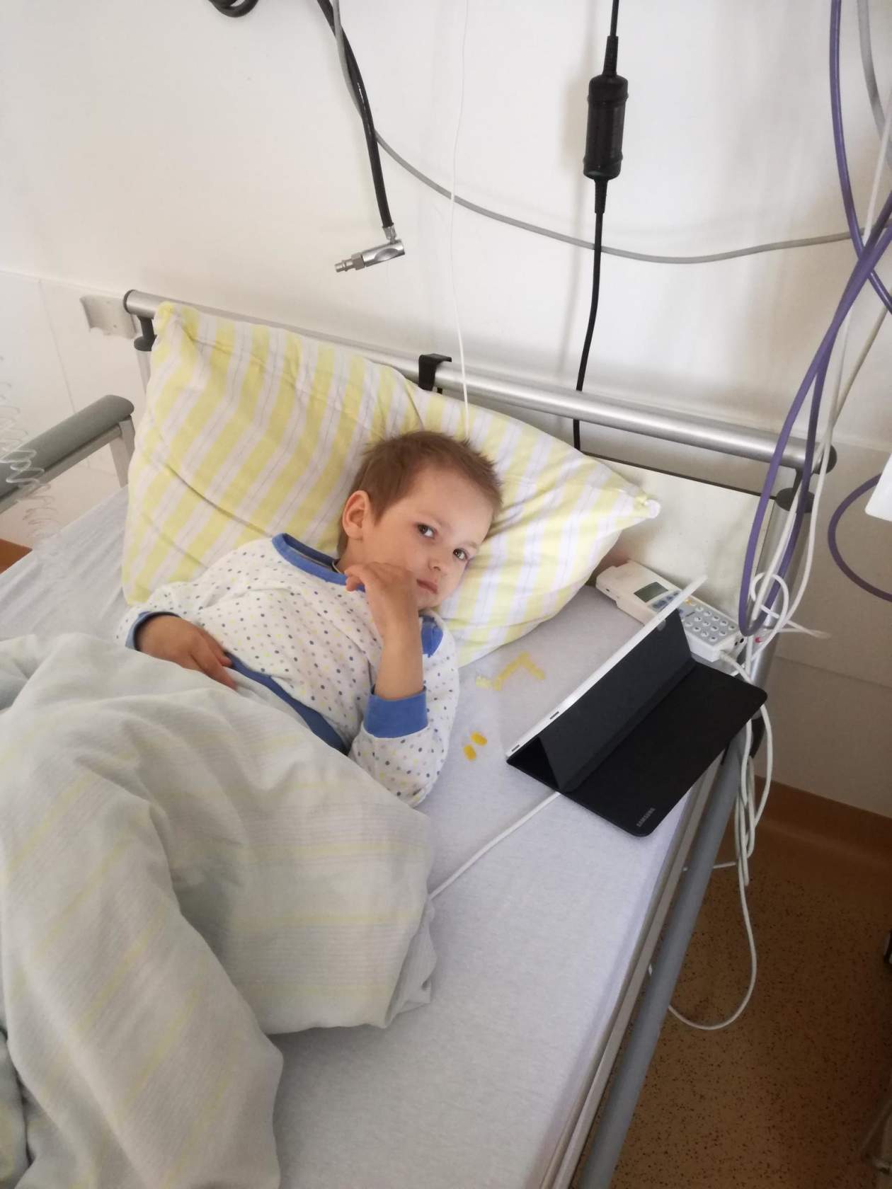 Рано утром, мы пришли в клинику, обе сдали кровь, и сразу же пошли ложиться в радиологию. Здесь нас разместили в разных комнатах, напротив друг друга. Дашуля очень переживала, что спать мы будем не в одной палате, и что мне нельзя заходить к ней. Но спустя некоторое время смирилась и расслабилась. Наблюдаю я за ней через монитор. Врачи просили чтоб я свела к минимуму наш контакт, так как я единственный для нее донор и нужно поберечься. Дашуля отнеслась к этому очень серьезно и ответственно. Сама себя во всем обслуживает: пьет таблетки, пьет, кушает, моется и т.д... Мое присутствие в другой комнате, скорей для морального успокоения, что мама где-то совсем рядом.