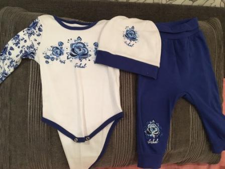 есть ли этикетки? По возможности – нужны их фото. Еще непонятно, что за синие штанишки. Попросите их артикул. У нас брюки от коллекций не отличить от ползунков и пижамных штановJ