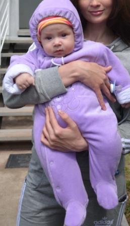 Комбинезон велюровый - это просто сказка! Р-р 74, носим с трех месяцев, просто подкатываю рукавчики, капюшон плотно прилегает, я ОЧЕНЬ довольна им