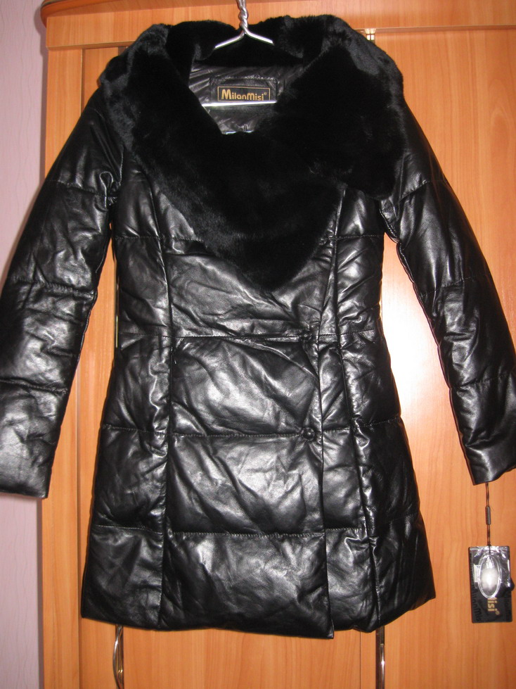 Очень понравилась модель Арт. Н.27 Кожаный пуховик с воротом из кролика. Утеплитель - пух. Ремень в комплекте. Длина 80 см.