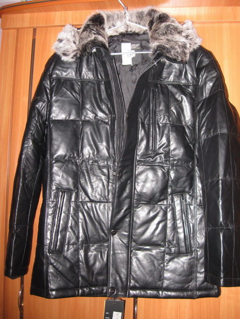 Модель 4м, мужской кожаный пуховик. Отличный фасон, ничего лишнего (я б сказала, классика). Размер в размер идет.