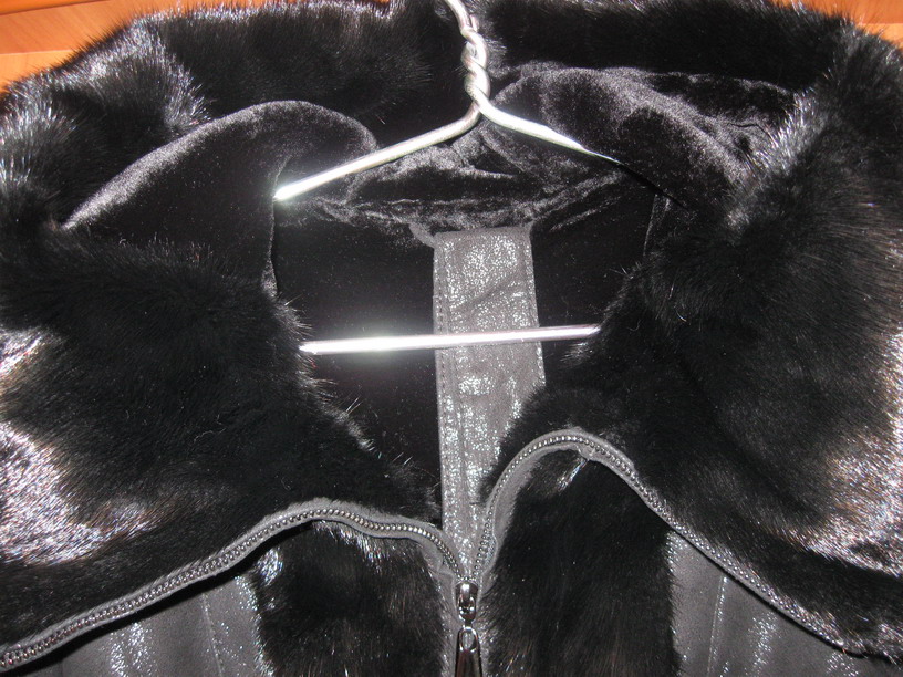 т.к. доставали из посылки и сразу фотографировали, кожа немного смята, но если вещь повисит на вешалке - кожа расправляется. Супер мягкий воротник, приятный на ощупь. Вещичка очень теплая.