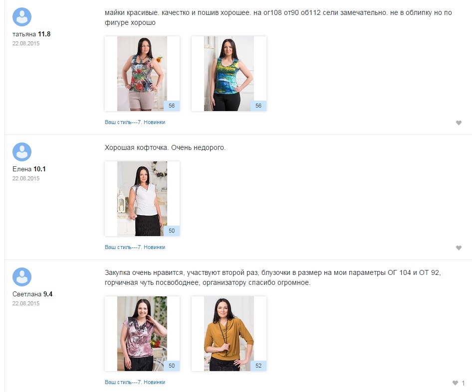 Брала в первой закупке блузку, очень понравилась, и качество отличное, и по размеру хорошо, в этой закупке ещё две заказу. За такие деньги-это, считай, даром. Спасибо за закупку. В следующей закупке тоже буду участвовать.