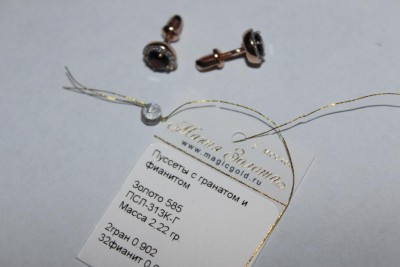Наконец-то пишу отзыв. Участвовала в закупке GOLD and SILVER 37СП заказывала пуссеты с гранатом 4803+720,45+120,08=5643,53; подвеску к ним 1380+207+34,5=1621,5 и детские серьги 2476+371,4+61,9=2909,3. Доставка получилась 2,5%. Ну а теперь к впечатлениям: Детские серьги такие же как на картинке, на первый взгляд маленькие, но они же детские. Понравились. Носить не пробывали, так как доча еще маленькая. Пуссеты с гранатом и фианитами тоже понравились, с раскручивающимся механизмом, который хорошо работает. Если в них спать не мешает. Камень темный. А вот на подвеске камень светлее намного и немного меньше, что очень расстроило, так как хотелось иметь комплект. Учитывайте это при заказе. Далее разочарования продолжались. Попыталась одеть подвеску на цепь (простой золотой жгут) не смогла, т.к. не пролезла она в отверстия, слишком плоские они. В итоге из трех цепочек, оделась она без проблем только на одну. Надо отдать должное мужу, который все таки одел ее на мою цепь, с помощью ножа и силы. Но снять без его помощи я тоже не смогла.