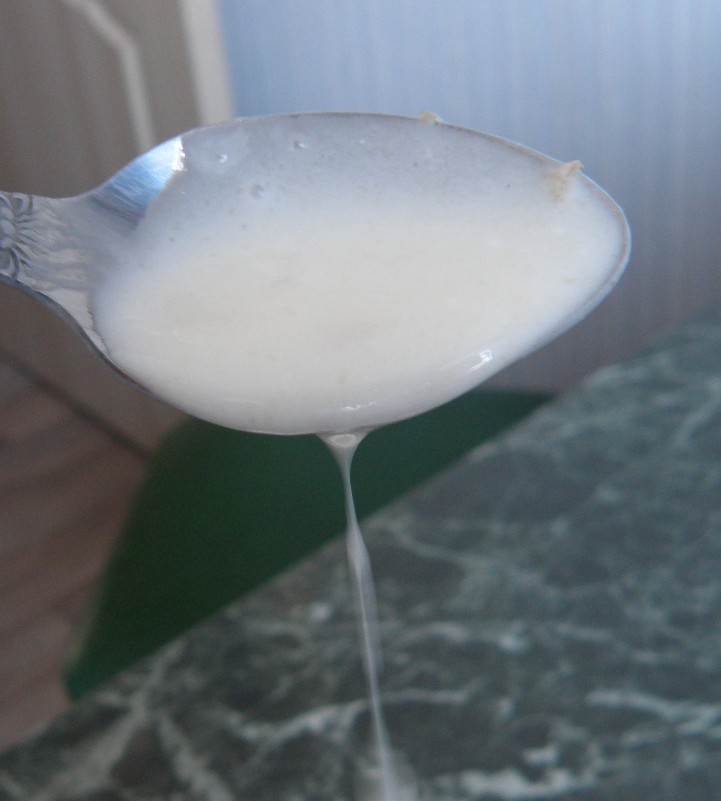 Это когда я уже с джемом смешала, получается как питьевой йогурт. Да и когда просто сахар добавляю получается как снежок