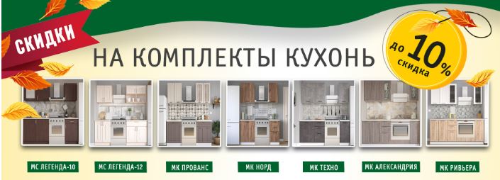 Хот[i]ите модульную кухню в виде готового решения? Мы её придумали и даём скидку до 10% на готовые комплекты. В акции участвуют семь коллекций! Все комплекты подготовлены с учетом спроса и вы гарантированно сможете отыскать кухни на любой вкус и цвет![/i]