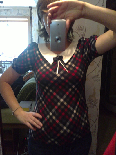 Еще заказывала блузу Дюшес. Вот она большемерит и на ярлыке стоит размер 46-50. Надо было брать 42- 44.