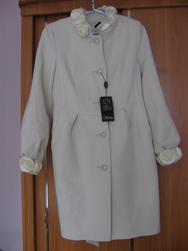Пальто с розочками Арт. ВЖ.147. Нежный цвет, шикарное! Розочки выполнены очень аккуратно, посмотрите на манжет: