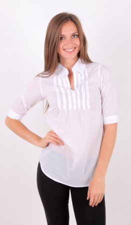 Рубашечка белая, размера S-44, но пока ехала, я похудела, и она мне великовата немного оказалась, но так как она свободного покроя, этого и незаметно совсем, очень тонкая, легкая, приятная к телу, я в нее просто влюбилась)