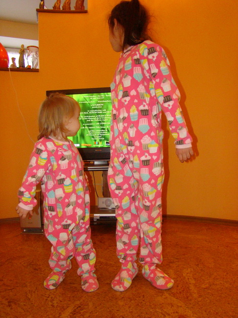 Пижамы флисовые брала на размер больше, за счет резиночек на взъеме ноги не спадает, видно что большеваты, но спать удобно, теплые (мои девочки не спят укрытыми, даже если когда заснут укроешь, пока не распинают с себя одеяло не успокоятся, теперь мое материнское сердце спит спокойно - в таких пижамах все закрыто, на старшей конечно немного комично, но она любит почувствовать себя лялей, размеры были по моему до 12 или 14 лет - муж предлагал мне такую же прикупить :) )цена большой (10 размер) 520 рублей со сбором, маленькой (4Т) 287 рублей. Еще брала другие пижамы штаны и кофта (тоже флисовые) очень удобные, и те и другие стирала ну раз 20 не меньше - цвета, форма на месте, единственное они электризуются, но не смертельно - спасает ополаскиватель. Ах да, забыла подошвы с анти скользкими точками