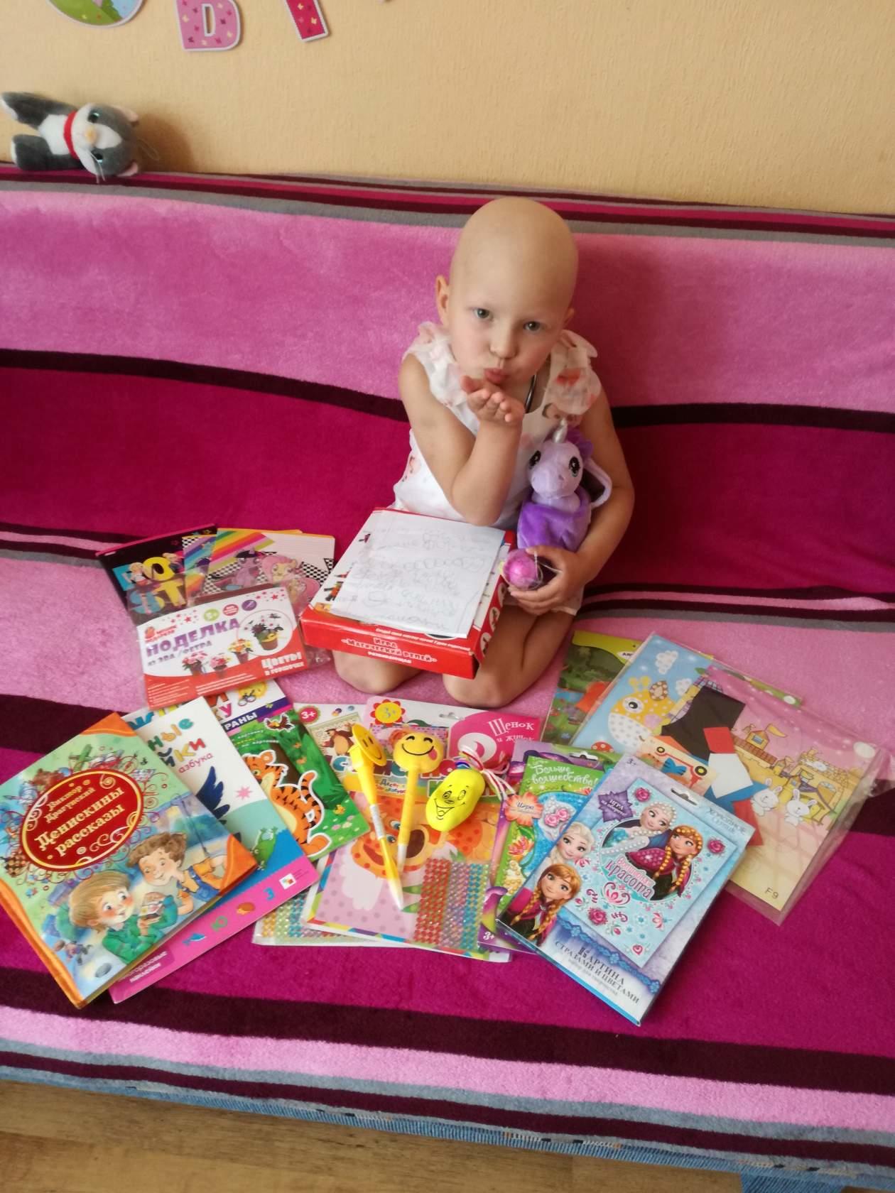 Здравствуйте наша дорогая семья, друзья и гости нашей группы! У нас все хорошо. Химию начали во время, переносим нормально. Анализы в норме, аппетита правда нет. Настроение у Дашули капризно-плаксивое. Радует то, что поздравления С Днем Рождения продолжаются! Получили очередную посылочку, из Новосибирска и нашей радости нет предела! Все так во время...полная посылочка всяких занимашек-развивашек))) именно этого нам и не хватает в клинике. Сейчас сидим делаем разные картины ...вообщем творим красоту)))). Очень тронуло письмо от маленькой принцесочки, которая еще не знает буквы, но очень старательно "нарисовала нам письмо"))). Спасибо за теплые слова и пожелания, нам очень приятно!!!