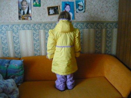 Это со спины, рюкзачек миленький, отстегивается, крепление на липучках, я все переживала за него, думала это такая аппликация, пачкаться будет сильно, а оказывается хочешь поваляться в снегу или еще где... можно отстегнуть