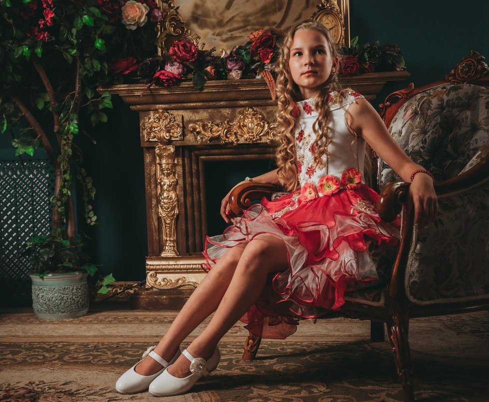 Заказывала два платья, по размеру брала больше, чем есть сейчас, но благодаря карсету и юбке на кольцах - всё отлично!