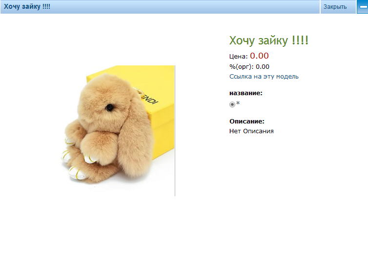 Elviro4ka писал(а):У меня такого зайку заказала сестра, я к сожалению проглядела эту закупку, так вот теперь моя великовозрастная дочь на меня обиделась, почему я ей такого не заказала, это оказывается супер как модно, а я не в курсе, отстала :-O