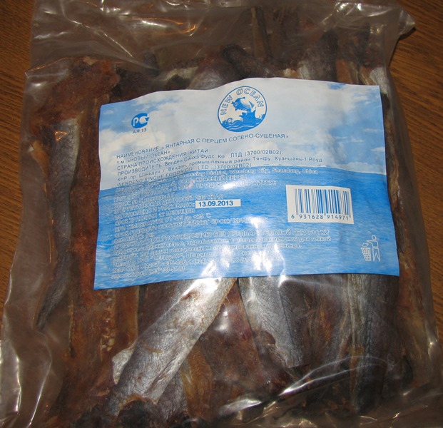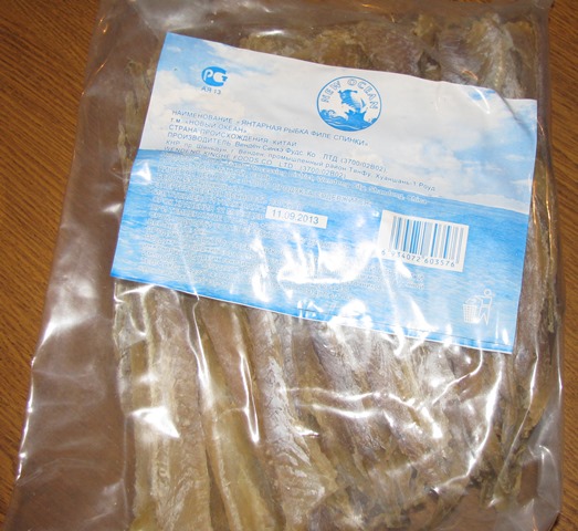 Минтай (янтарная рыбка) солено-сушеный с перцем (кусочки). Состав: рыба минтай, соль, красный перец.