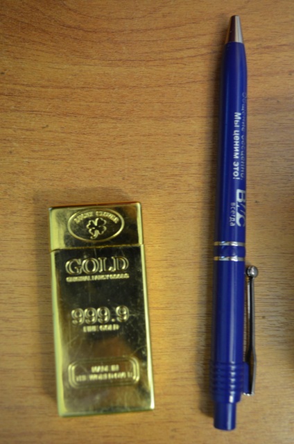 Зажигалка-слиток золота нормальная, ток пришла почему-то поцарапанная (на фото это видно).