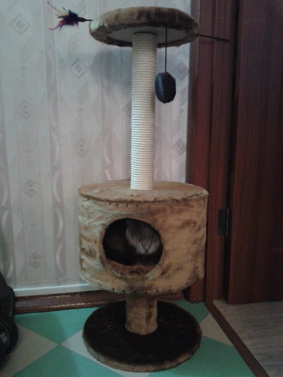 а вот когтеточка хорошая. Мы накидали внутрь мышек, киса любит с ними поиграть. А вот наверх залазить наотрез отказалась, боится ((