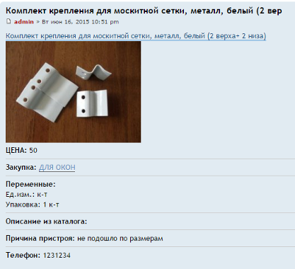 3. После сохранения информации объявление автоматически появляется в теме пристроя, в соответствующем разделе, в объявление попадают данные введеные пользователем, а также название, закупка в которой был приобретен товар, переменные выбранные при заказе, описание из каталога и фотографии из каталога. Также товар добавляется в каталог "пристроя" из выбранного раздела, ссылки на каталог находятся в первом сообщении каждой темы. Кроме того список всех каталогов пристроя находится в первом сообщении в этой теме и в информационном разделе.