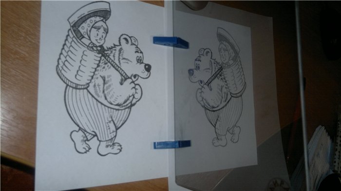 5)Не переставая смотреть сквозь экран начните обводить изображение. Продолжаейте обводку до окончательного завершения рисунка
