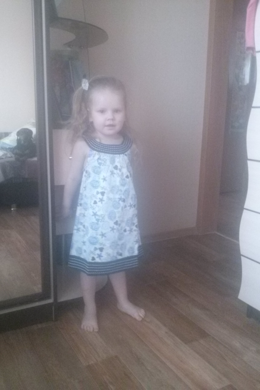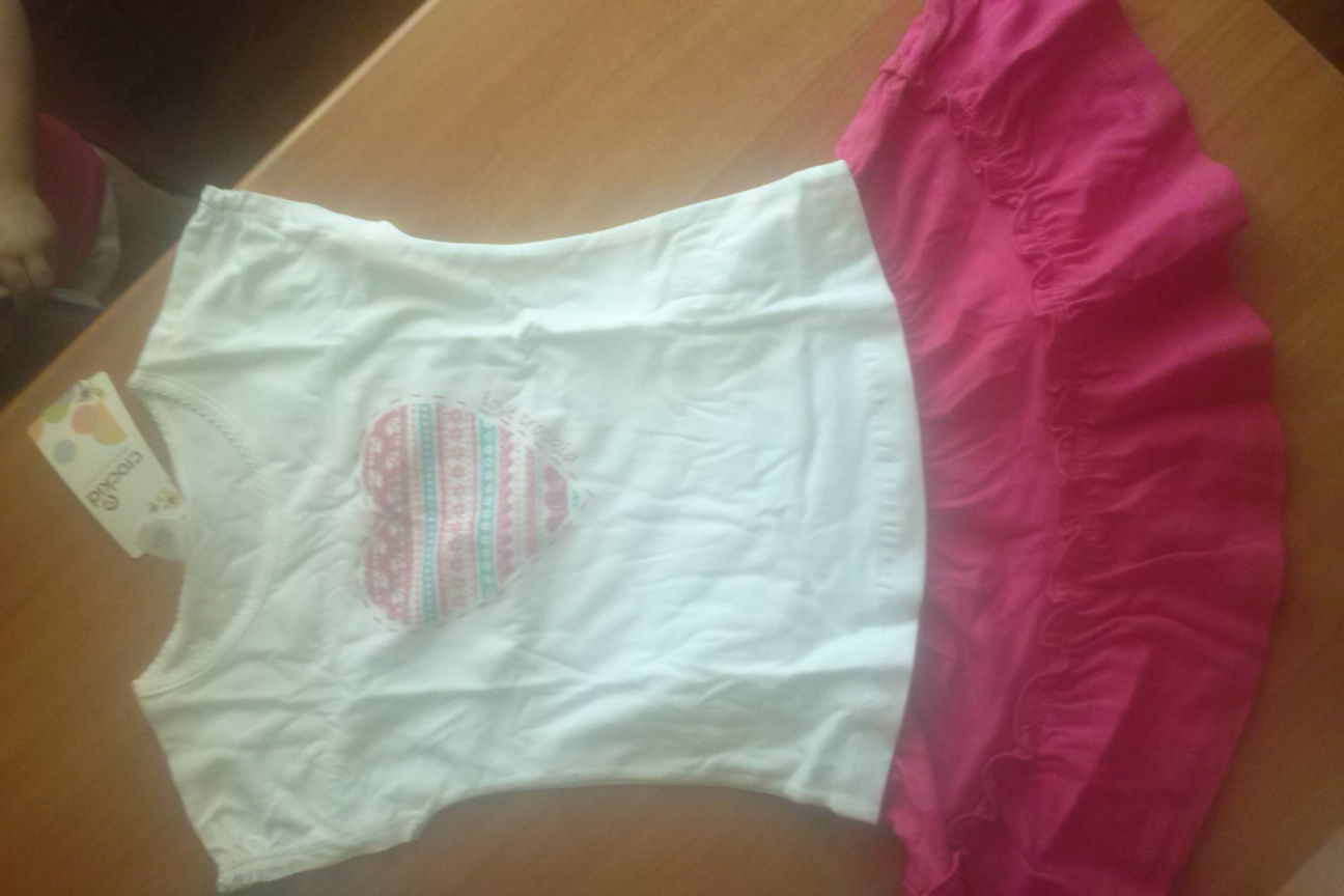 И ещё футболочку на 98 размер. Вот так выглядит всё вместе. Рост где-то 88см.