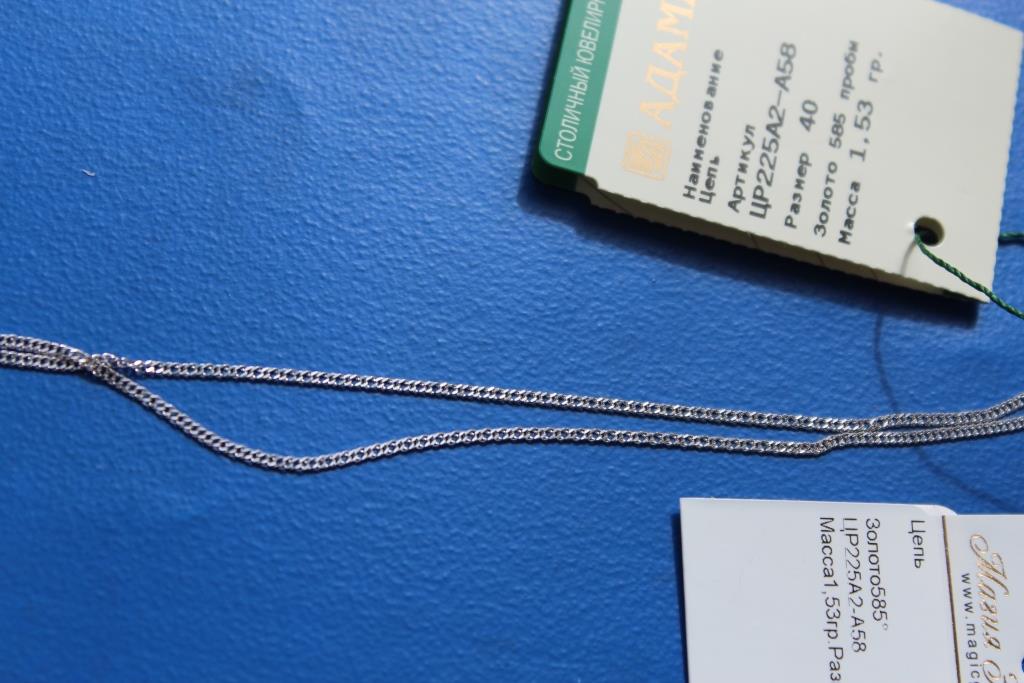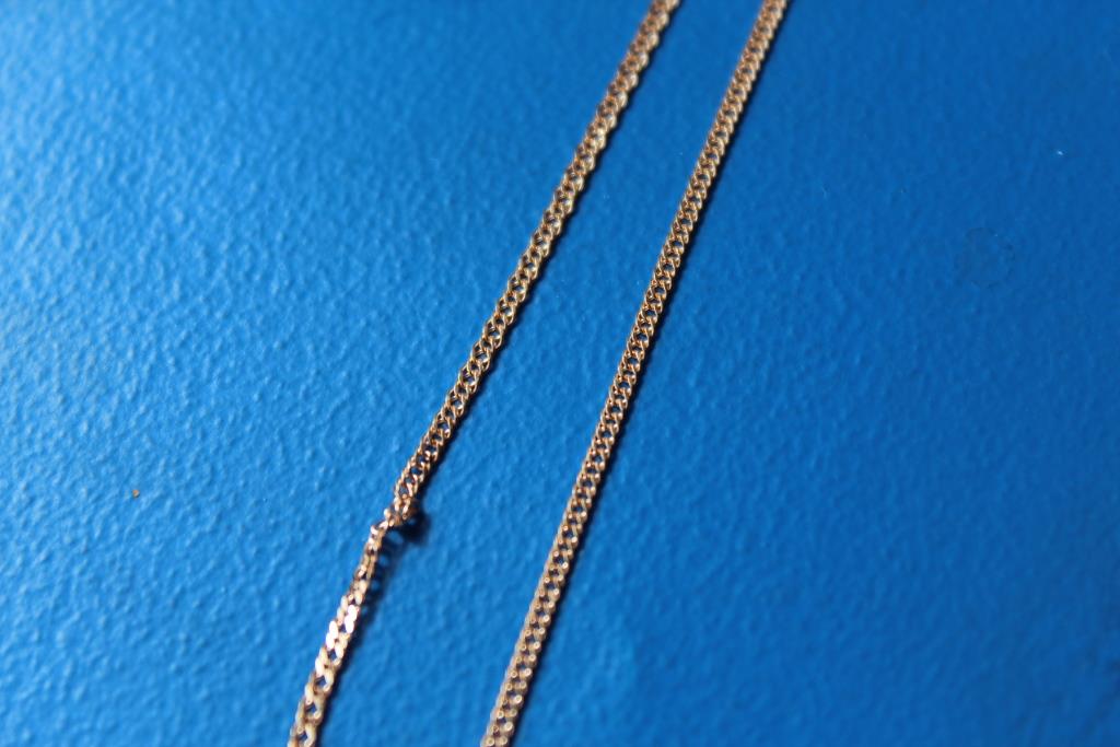 Еще заказывала две цепочки с белого и желтого золота. Цепочки симпатичные блестят хорошо, есть алмазная грань у них, единственное очень уж тоненькие они получились, но для небольших, не объемных кулонов подойдут.
