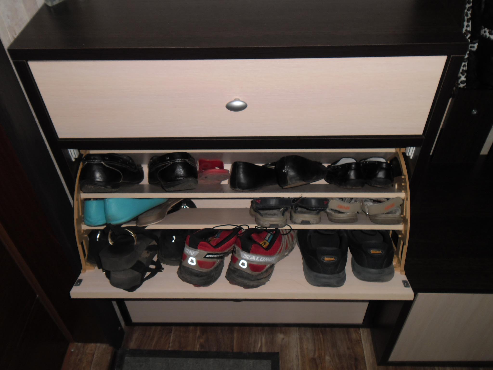 Прихожей очень довольна (Кармен-2 вышла 8700, по цене комода :dance2: ), аккуратная, не широкая и зеркало с внутренним шкафом и полочка под мелочь и под обувь, правда она не высокая, но для меня коротышки безумно удобно. А у двери пустотелый отсек с крючками для одежды и подставкой для обуви, просто коридор очень узкий, неудобно фото делать. Изображение