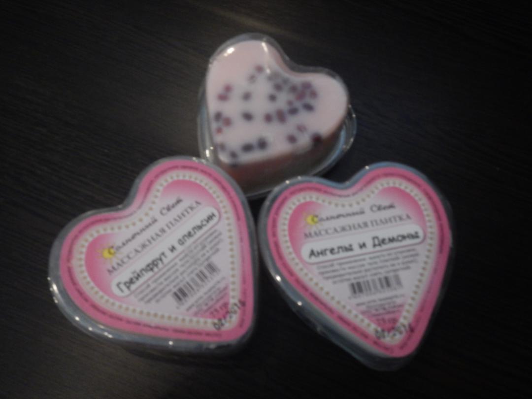 1.Плитка массажная ГРЕЙПФРУТ И АПЕЛЬСИН, 80гр, Плитка массажная АНГЕЛЫ И ДЕМОНЫ, 80гр, Плитка массажная ЭЛЕКСИР СТРАСТИ (Coco Mademoiselle), 80гр- вышел из душа и провел по телу плиткой, кожа мягкая, гладенькая, а аромат....просто обалденный.